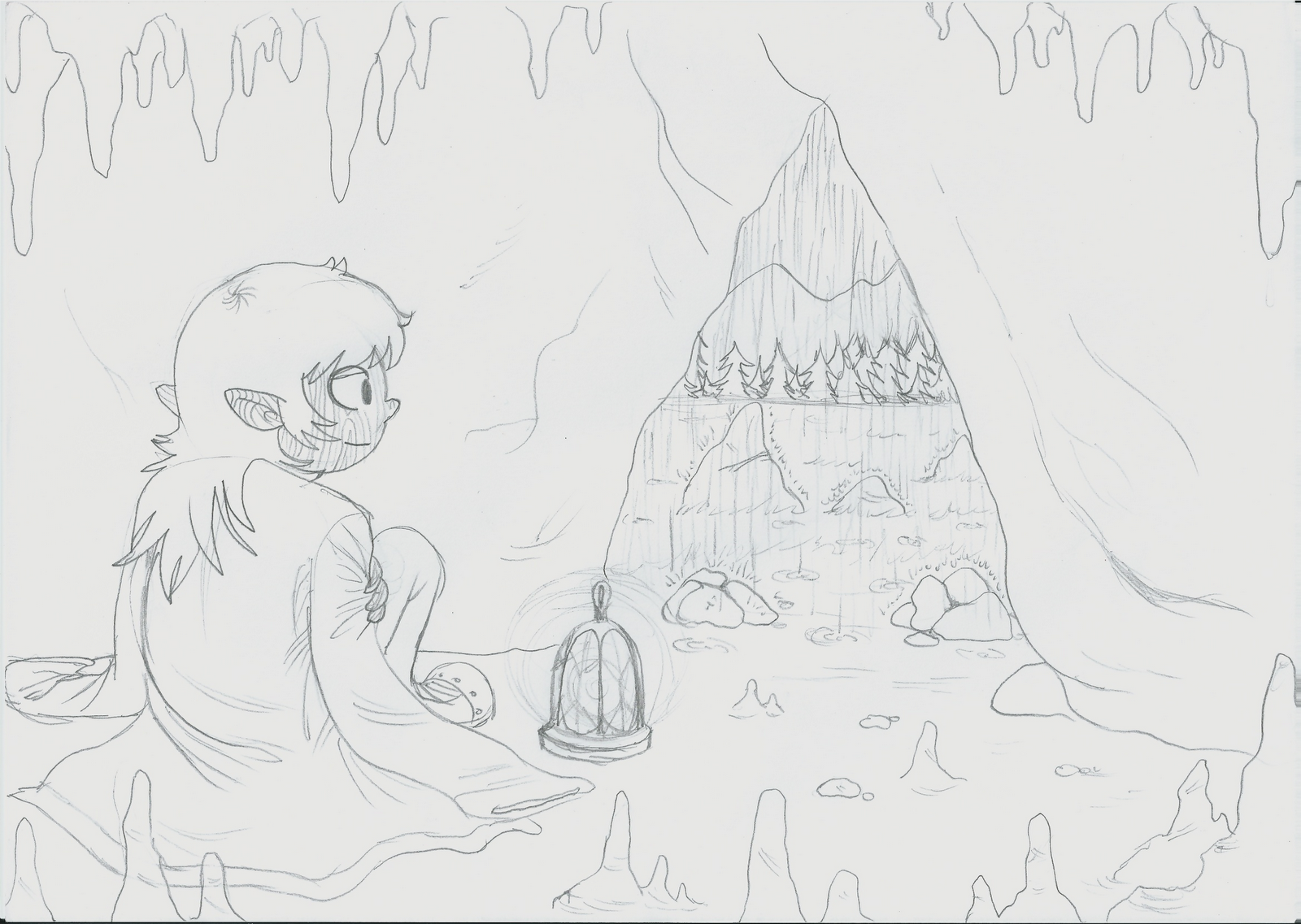 Here is a panel by Luke Pearson from his sequel to 'Hildafolk': 'Hilda and the Midnight Giant'. His scenery and environments tend to be inspired by the Scandinavian countryside, which is a similar look and feel to what I would like the fantasy world involved within the storyline of what I plan to be my final piece would be like. So, I drew an A4-sized artist's copy of the panel's background/scenery.